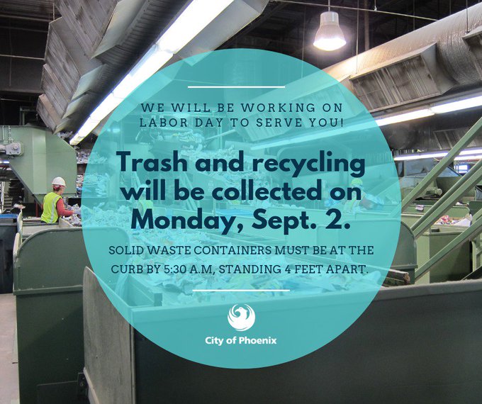 City of Phoenix offices will be closed Monday, September 2 in observance of the Labor Day holiday.